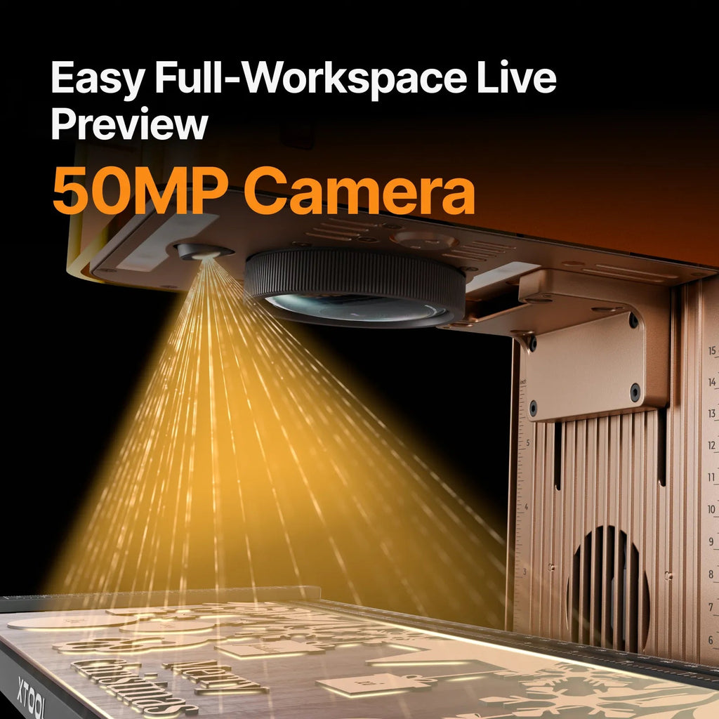 La cámara integrada de 50 MP te muestra todo el área de trabajo en pantalla y alinea tus diseños con precisión de hasta 0.1 mm, reduciendo desperdicio y errores, incluso en piezas pequeñas.